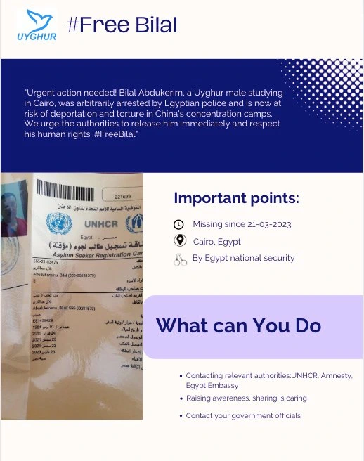 مسىىردا ئوقۇۋاتقان بىلال ئابدۇكىرىم تۇتقۇن قىلىنغان ئەردەم 38 ياشلىق ئەر بىلال ئابدۇكېرىم يول خېتى سەۋەبلىك مىسىردا ئائىلىسى بىلەن قاپسىلىپ...