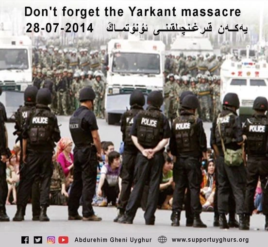 ئابدۇرېھىم غېنى ئۇيغۇر بۈگۈن بۇنىڭدىن7 يىل بۇرۇن يەنى 2014-يىلى 7-ئاينىڭ 28-كۈنى خىتاي تاجاۋۇزچىلىرى شەرقى تۈركىستاننىڭ يەكەن ناھىيەسىنىڭ ئىلىشقۇ ۋە خاڭدى...