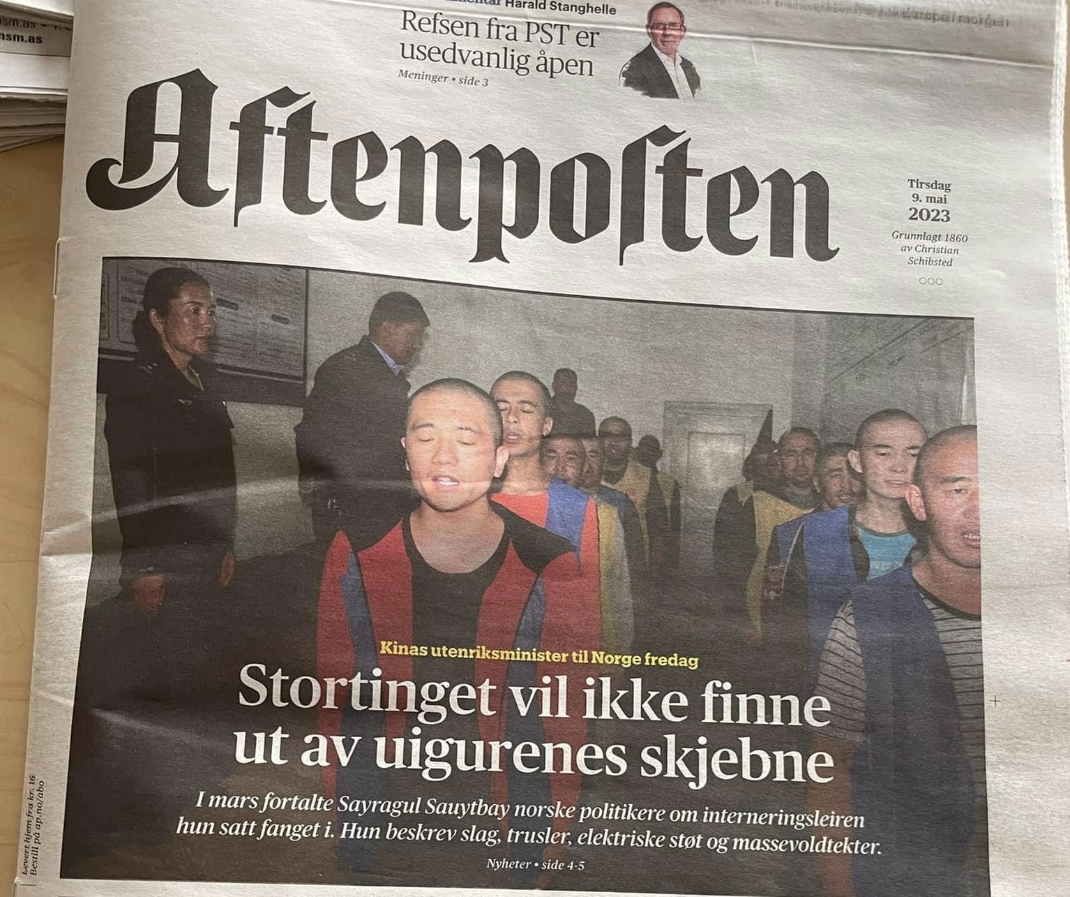 ئۇيغۇر ئاگېنتلىقى 2023- يىلى 9- ماي بۈگۈن يەنى 9- ماي نورۋېگىيەنىڭ نوپۇزلۇق گېزىتى ئافتىن پوستىننىڭ مۇقاۋا بېتىگە «پارلامېنت...