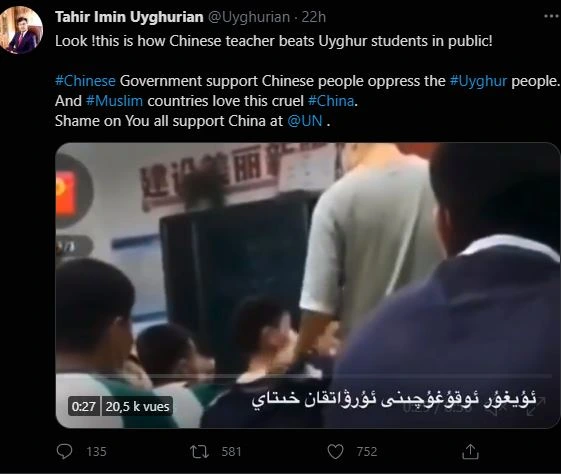 ئارمان ئۇيغۇر ئاگېنتلىقى، 2021- يىلى 10- ماي 9- ماي ئىجتىمائىي تور تاراتقۇلىرىدا خىتاي ئوقۇتقۇچىنىڭ بىر ئۇيغۇر ئوقۇغۇچىنىڭ يۈزىگە توختىماي...