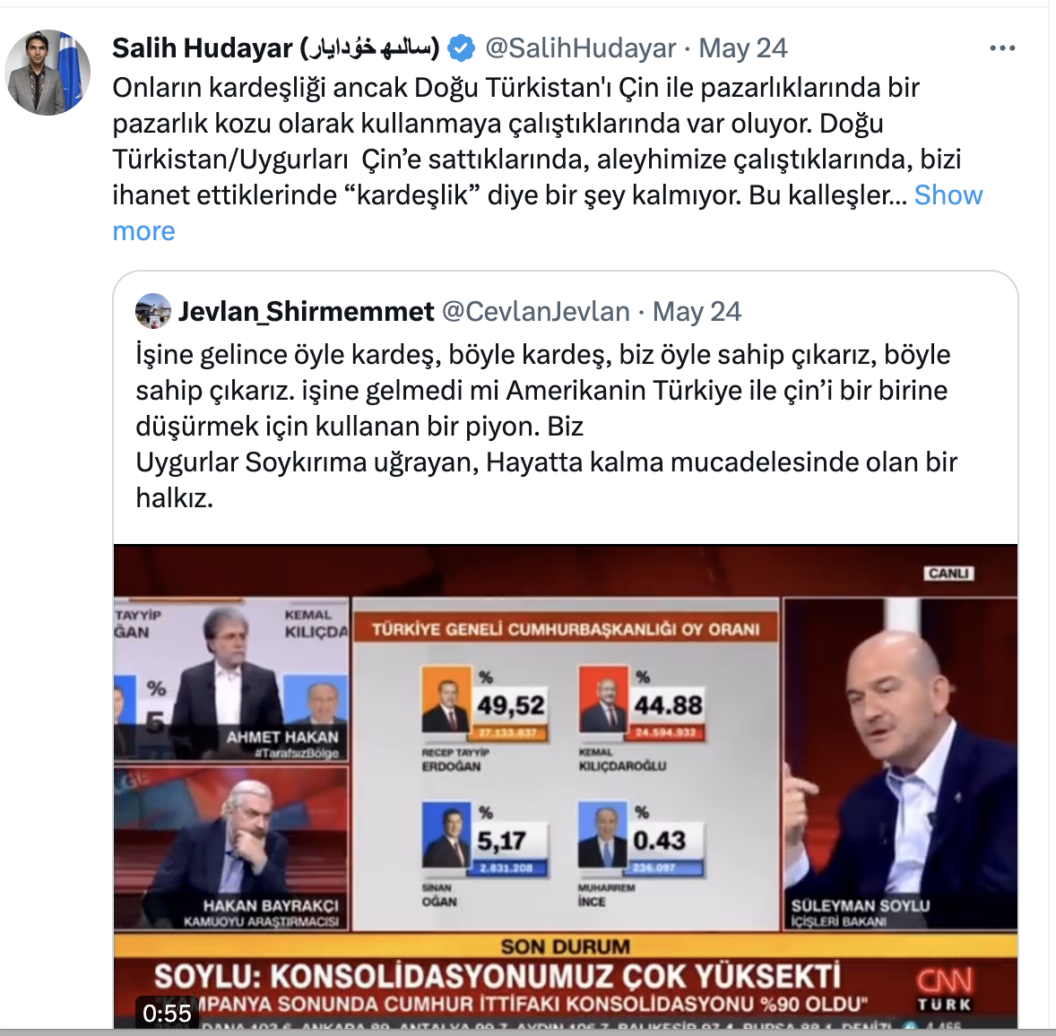 سالىھ خۇدايارنىڭ سۇلايمان سويلۇنىڭ ئۇيغۇرلار توغرسدىكى سۆزلىرىگە قارشى باياناتى شەرقى تۈركستان مىللى ئويغىنىش تەشكىلاتى قۇرغۇچىسى سالىھ خۇدايار تېۋىتتردا تۈركچە بايانات...
